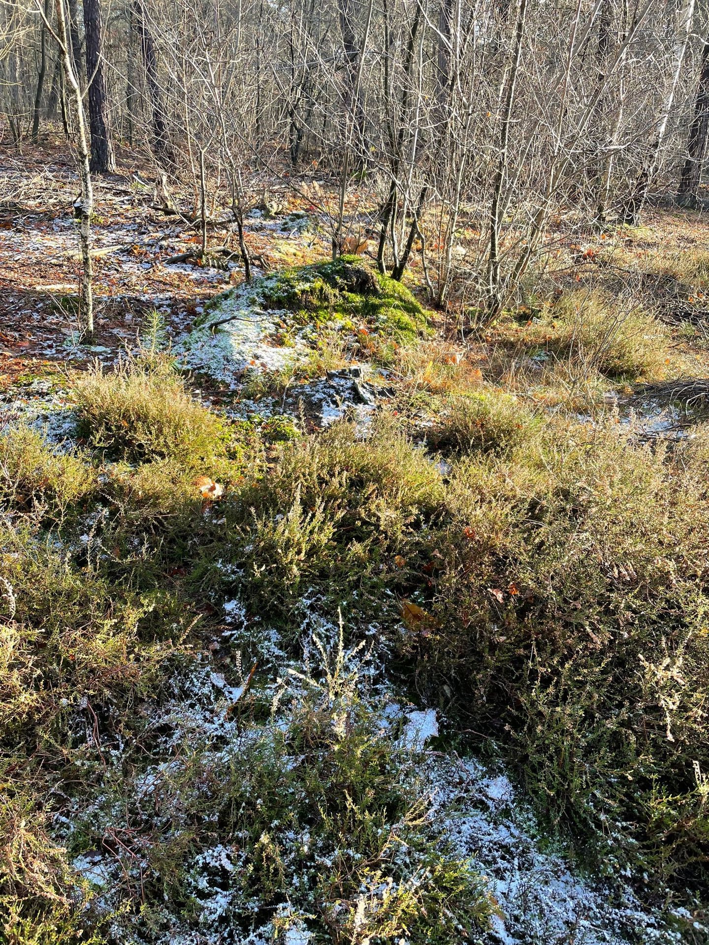 We hebben bosonderhoud gepleegd op De Houtberg. Niet met machines, zoals we even verderop tijdens de wandeling door het Riels Hoefke hoorden, maar gewoon met de hand en zonder elektrisch gereedschap. Een redelijk forse den heeft het loodje gelegd, dennenscheerder en letterzetter hebben hem zodanig verzwakt, dat hij helemaal schuin was weggezakt tegen een andere boom. Omwille van de veiligheid hebben we hem omgetrokken en in stukken gezaagd. Het kost energie maar het geeft ook energie om zo bezig te zijn!